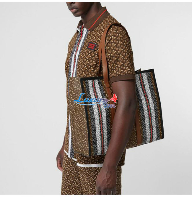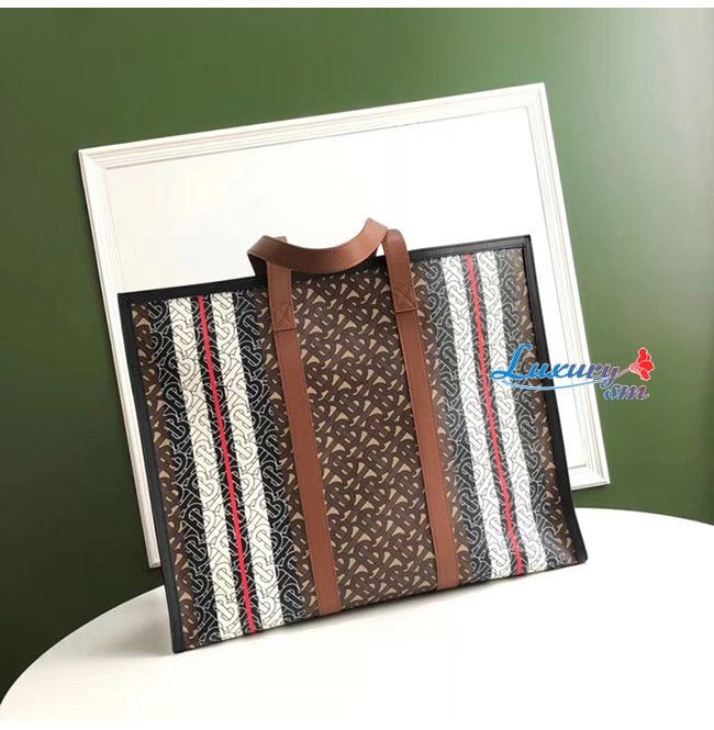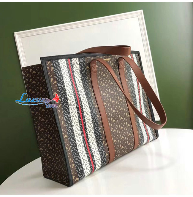[스페셜오더]BURBERRY-80183611 버버리 모노그램 스트라이프 E-캔버스 토트백