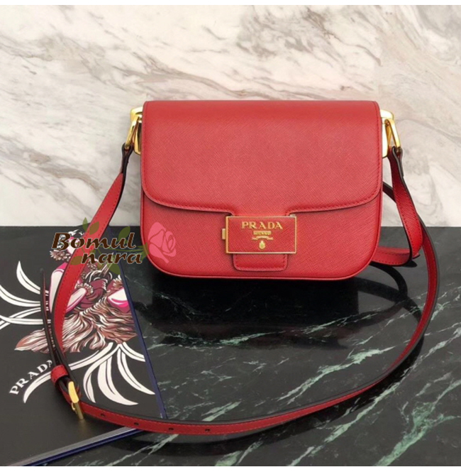 [스페셜오더]PRADA-1BD217 프라다 파이어 레드 사피아노 엠블럼 숄더백