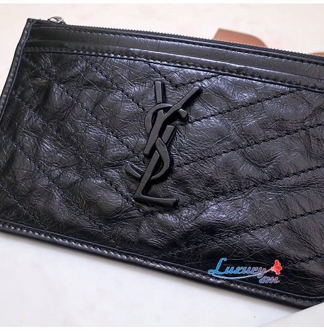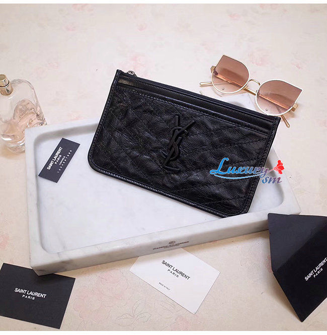 SAINT LAURENT-583577 생 로랑 블랙 빈티지 송아지 가죽 니키 파우치