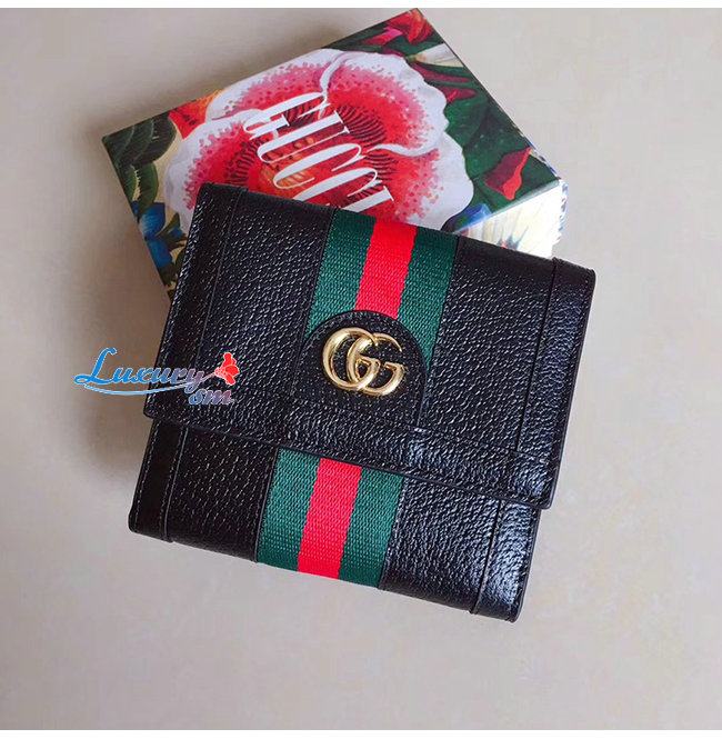 [스페셜오더]GUCCI-523173 1060 구찌 오피디아 블랙 가죽 플랩 지갑