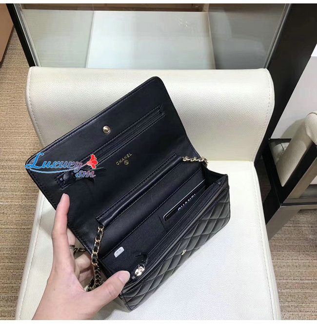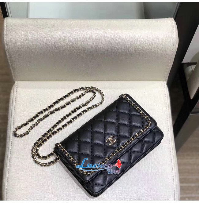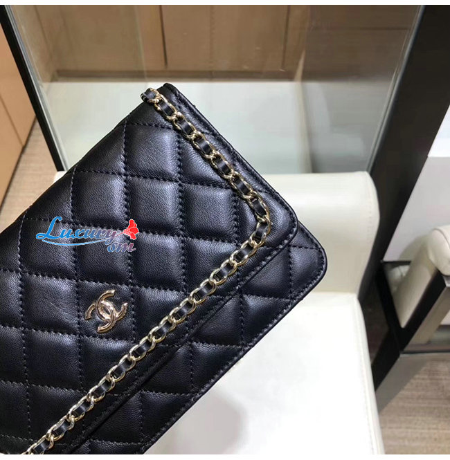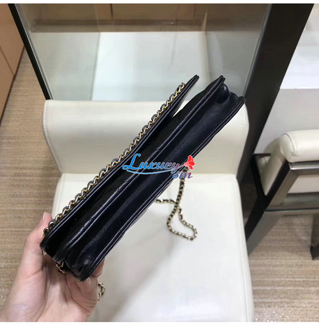 [스페셜오더]CHANEL-AP0674 샤넬 블랙 램스킨 골드메탈 체인 지갑