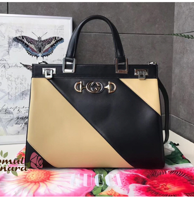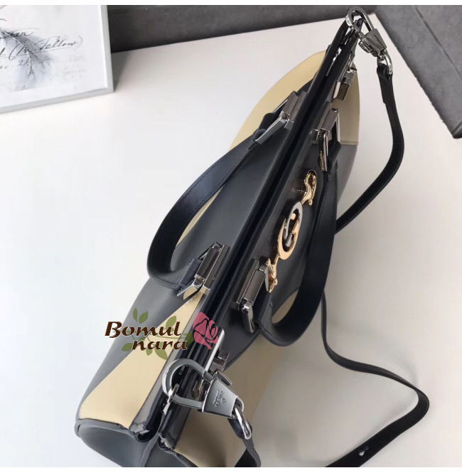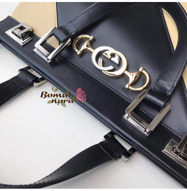블랙 및 베이지 컬러가죽과 구찌를 대표하는 실버와