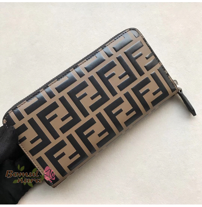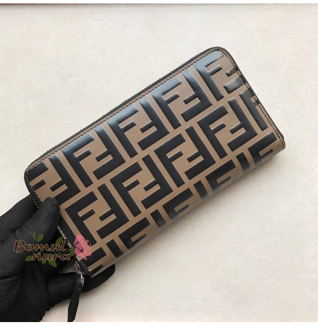 [스페셜오더]FENDI-7M0210 팬디 브라운/블랙 FF 패턴 프린트 지피 어라운드 월릿