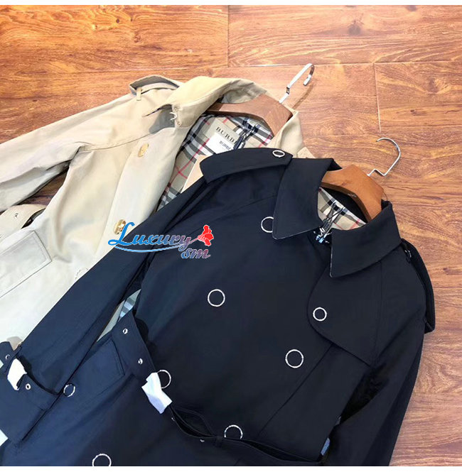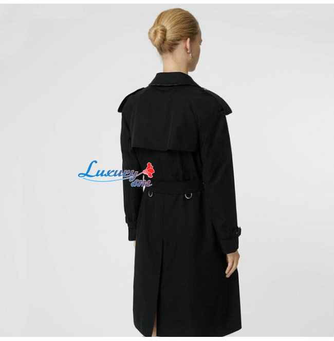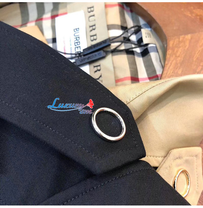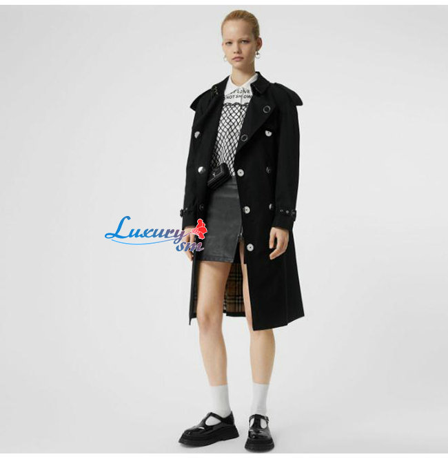 BURBERRY-45483371 버버리 블랙 프레스 스터드 디테일 코튼 개버딘 트렌치코트