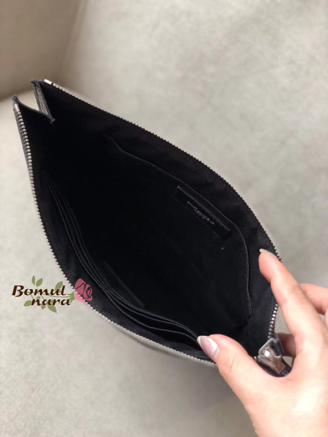 음각 스틸 로고 클러치백입니다.