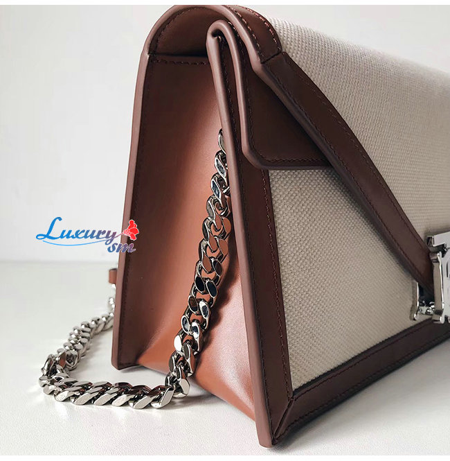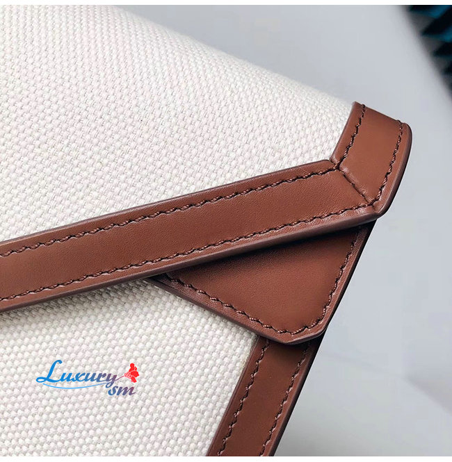 캔버스 및 가죽 소재의 엔벨로프 클러치.