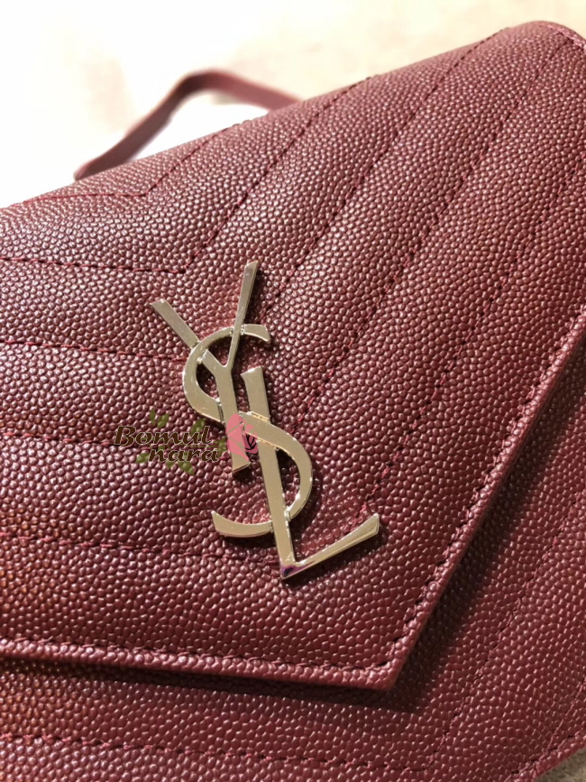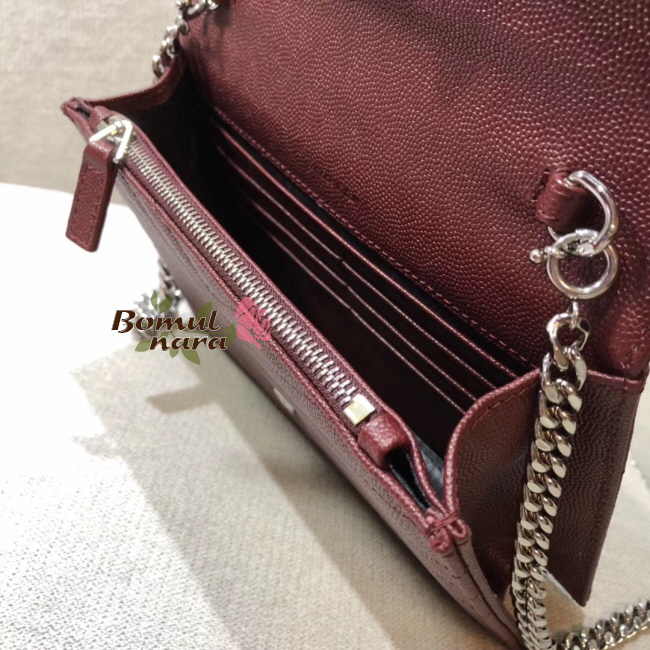 [스페셜오더]SAINT LAURENT-393953 생 로랑 다크 레드 실버 마틀라세 모노그램 엔벨로프 woc 체인 지갑