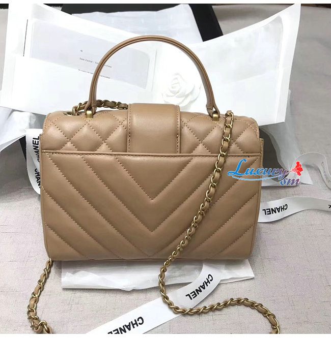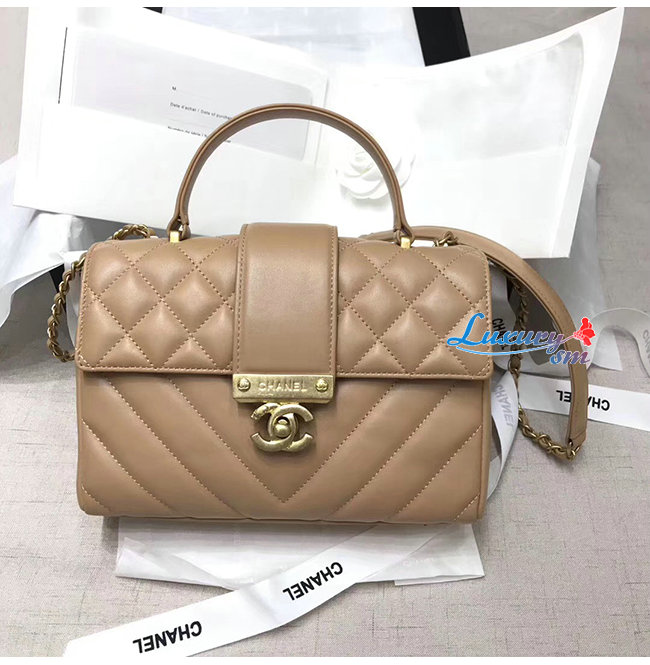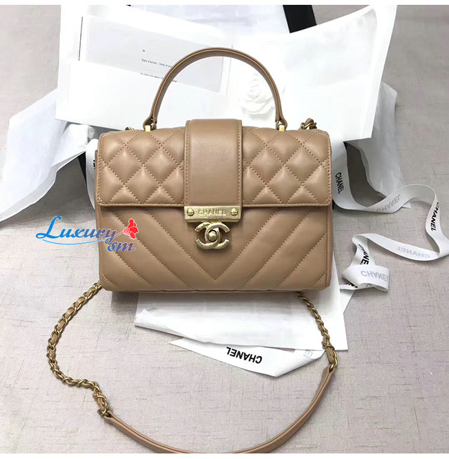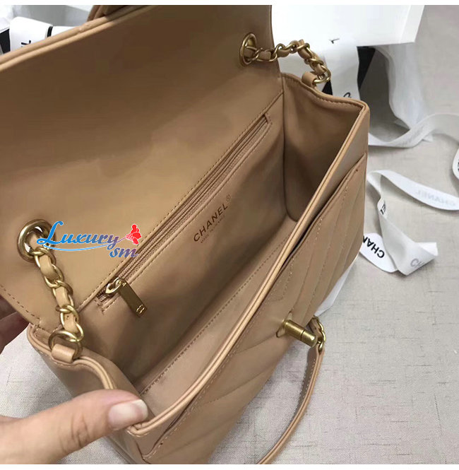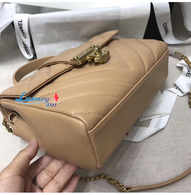 [스페셜오더]CHANEL-AS0804 샤넬 베이지 카프스킨 골드메탈 핸들 장식 플랩백