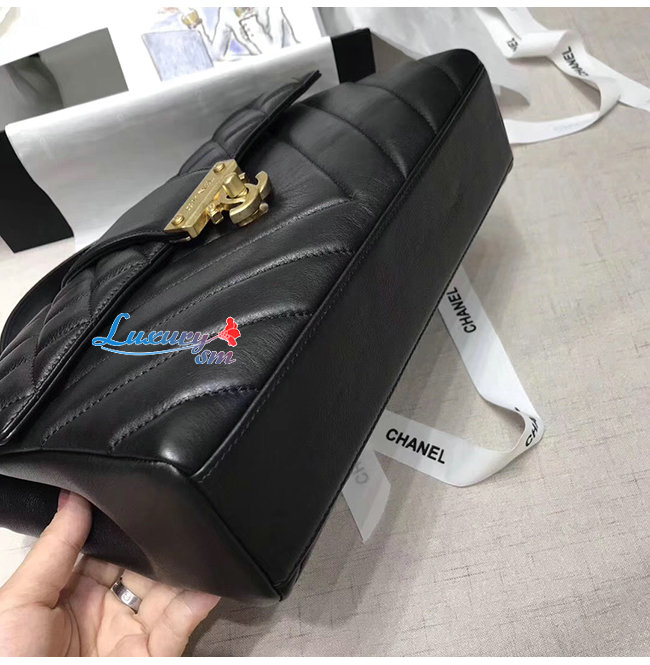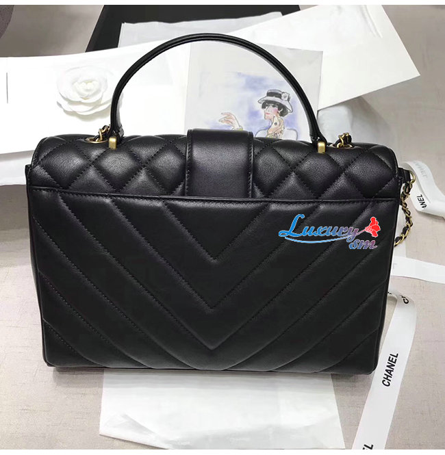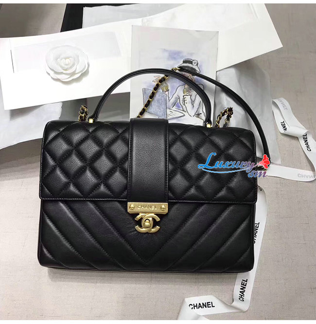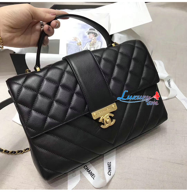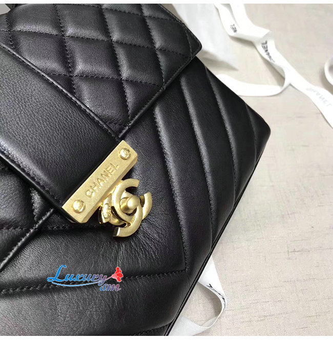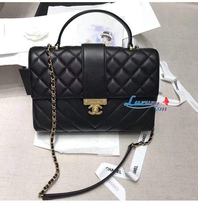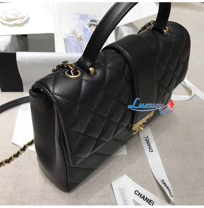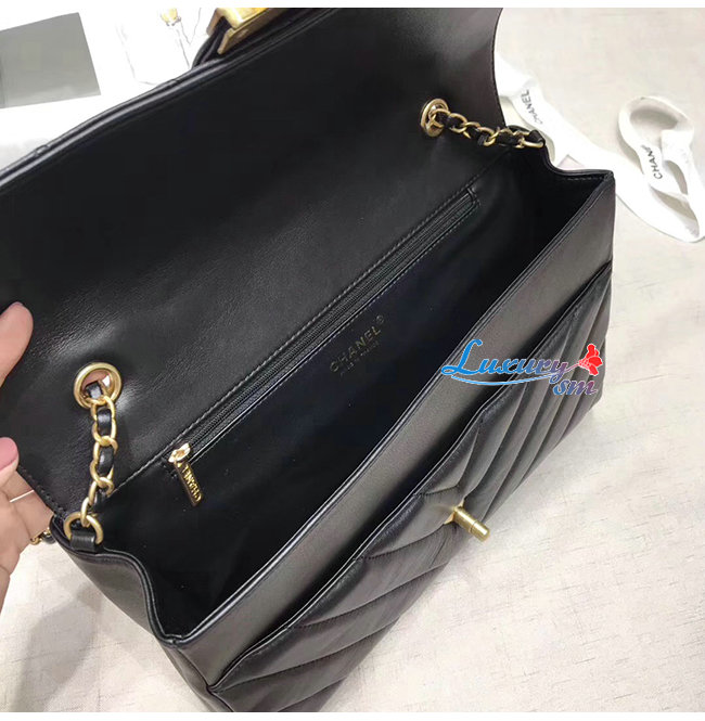 [스페셜오더]CHANEL-AS0712 샤넬 블랙 카프스킨 골드메탈 핸들 장식 플랩백