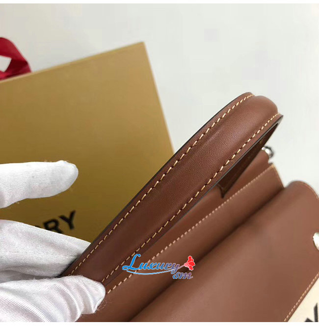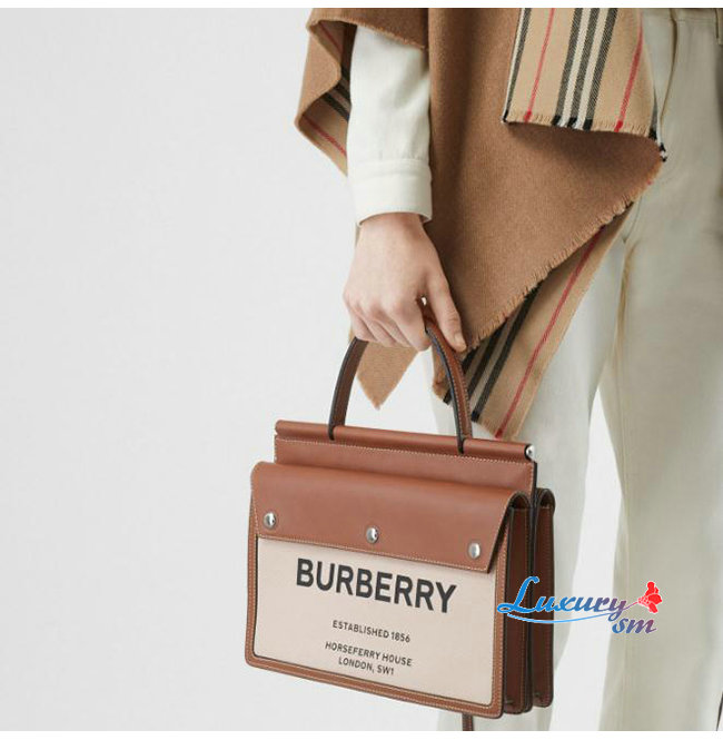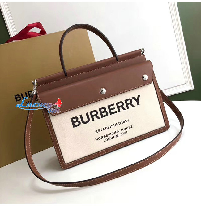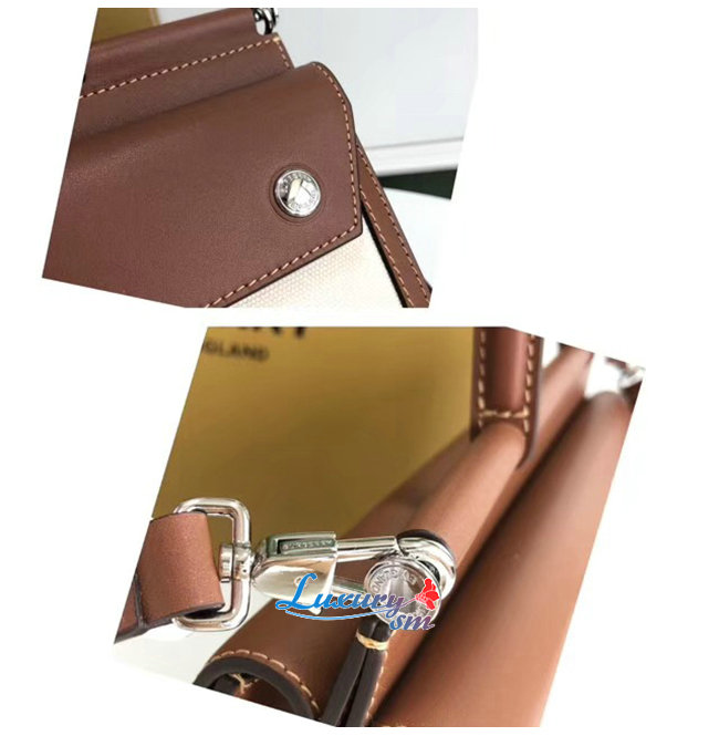 광택있는 금속하드웨어 앞면의 버버리 프린트 로고.