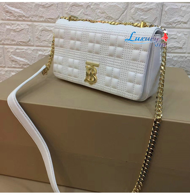 [스페셜오더]BURBERRY-80214921 버버리 화이트 양가죽 스몰 퀼트 체크 롤라 백