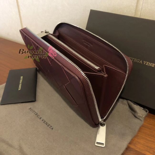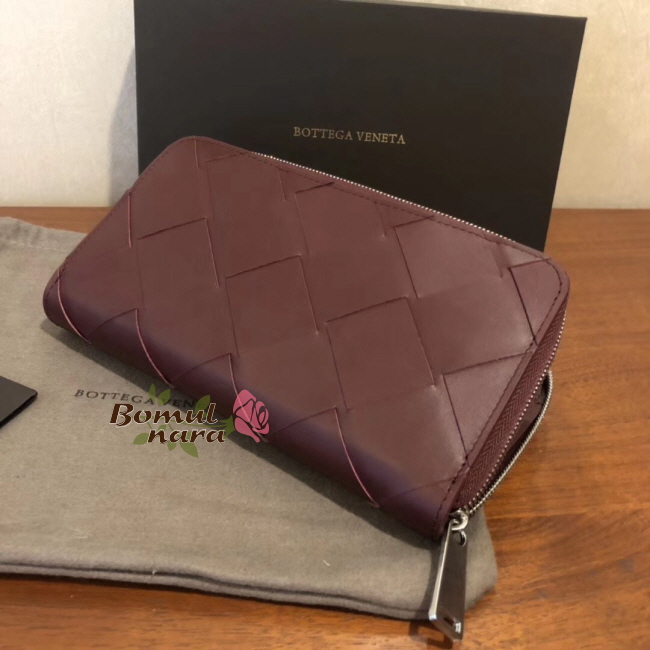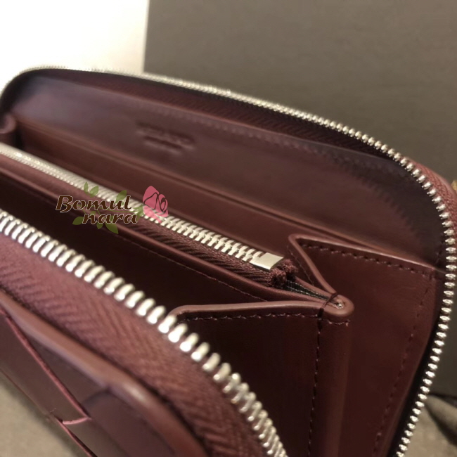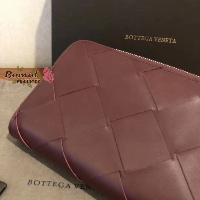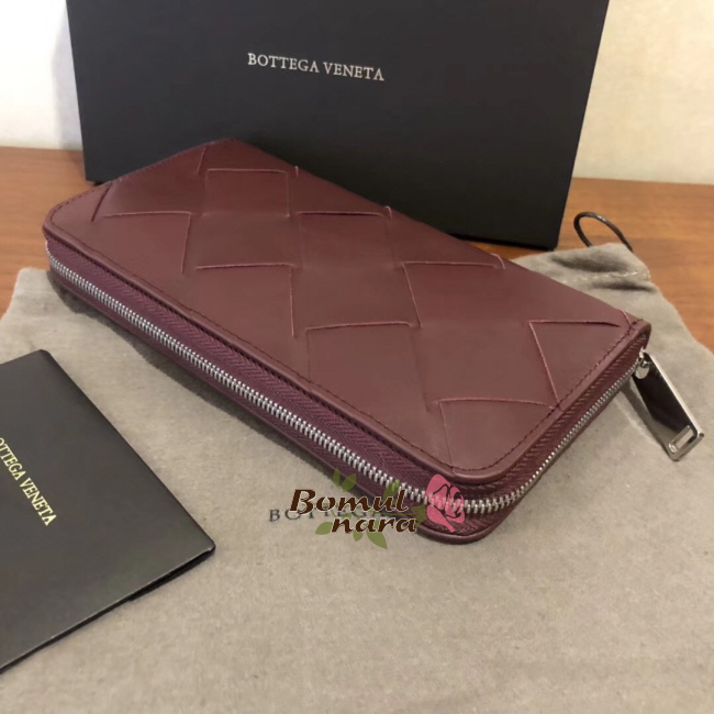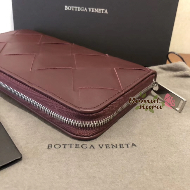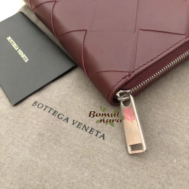 [스페셜오더]BOTTEGA VENETA-573431 보테가 베네타 버건디 인트레치아토 나파 미디엄 짚 어라운드 레플리카 장지갑
