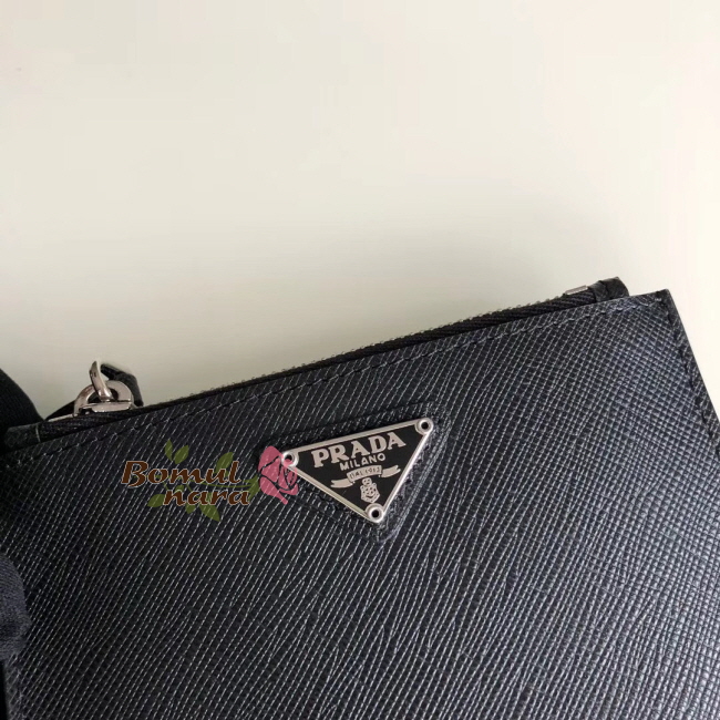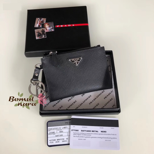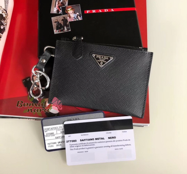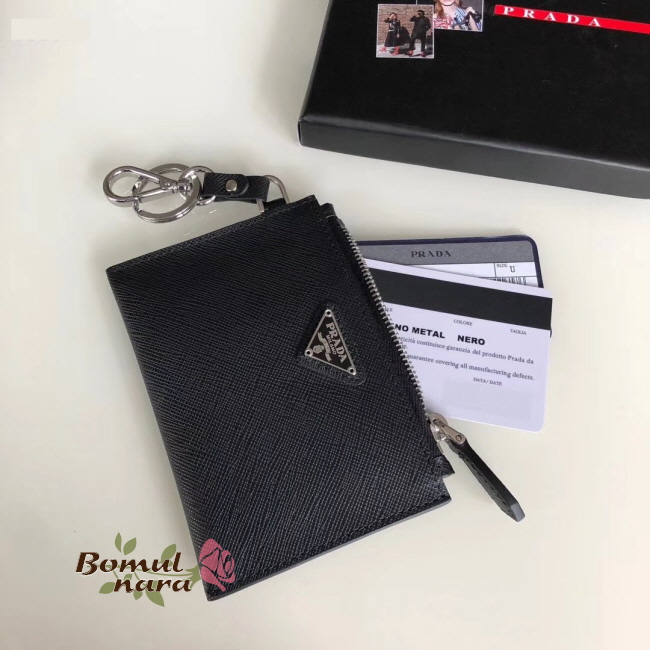 PRADA-2TT080 프라다 블랙 사피아노 키체인 동전/카드 지갑