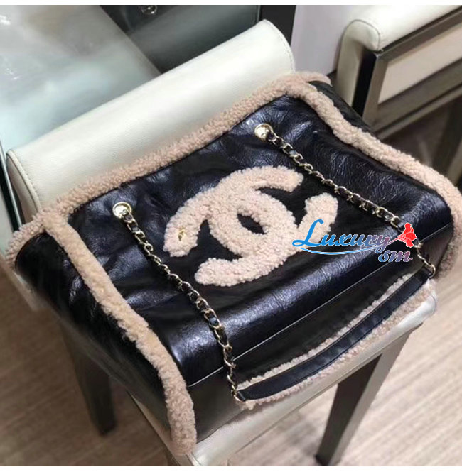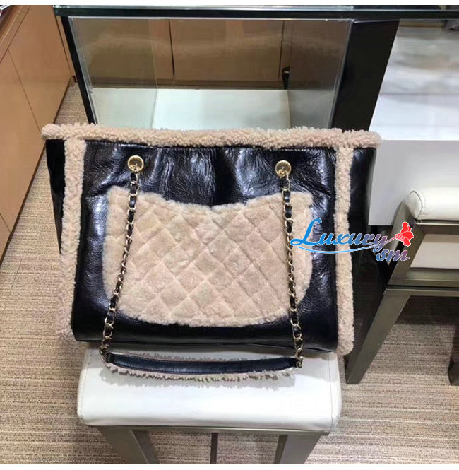 [스페셜오더]CHANEL-AS1167 샤넬 블랙/베이지 샤이니 크럼플드 쉽스킨 시어링 쉽스킨 쇼핑백
