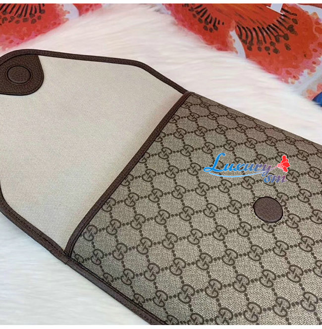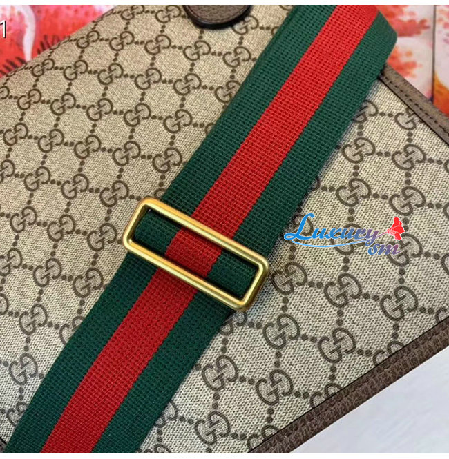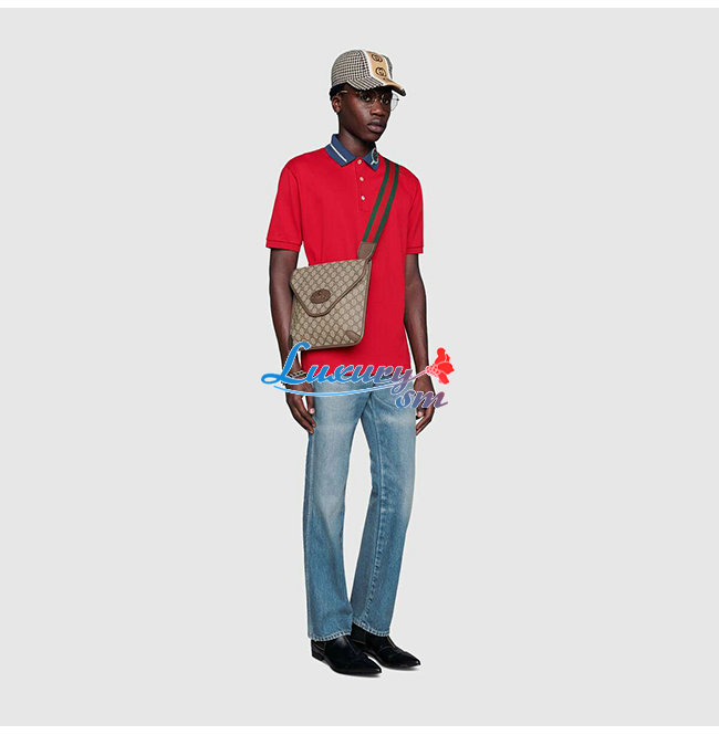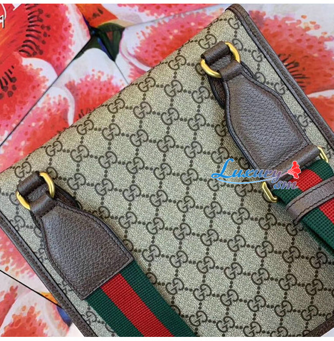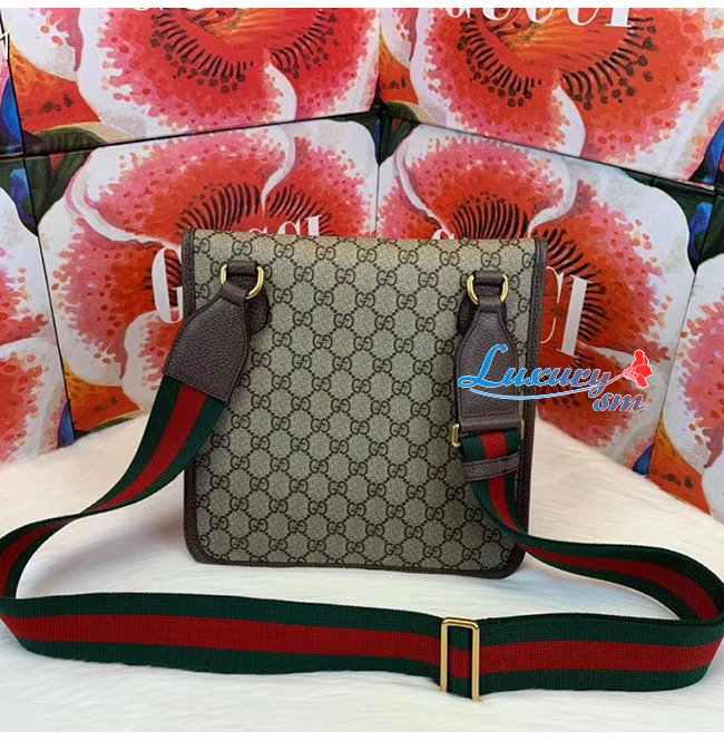 미디엄 사이즈의 슬림한 메신저 백. GG 수프림 가죽