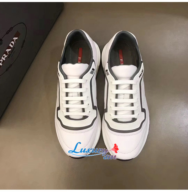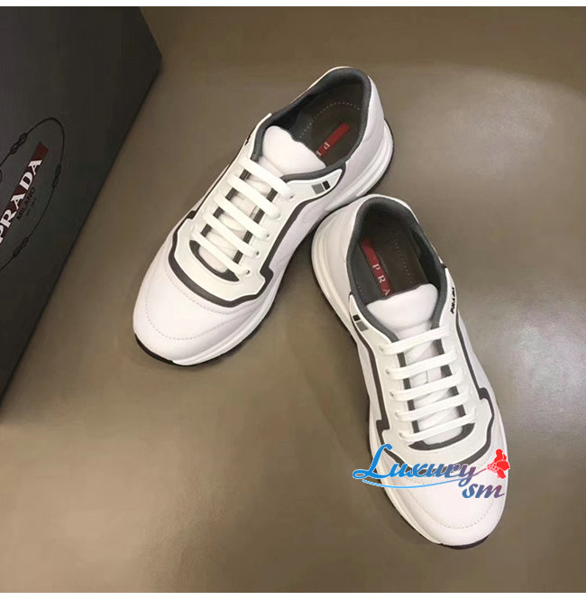 PRADA-4E3382 프라다 화이트 개버딘 패브릭 스니커즈
