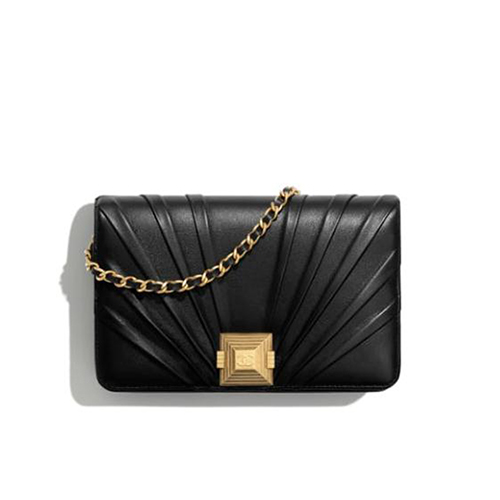 [스페셜오더]CHANEL-AP0388 샤넬 블랙 플리츠 램스킨 골드메탈 체인 지갑