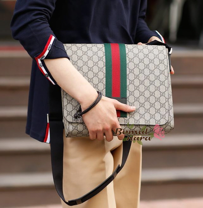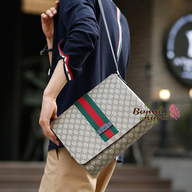 구찌 삼선 라인 플랫 메신저 숄더백은 가벼운 소지품