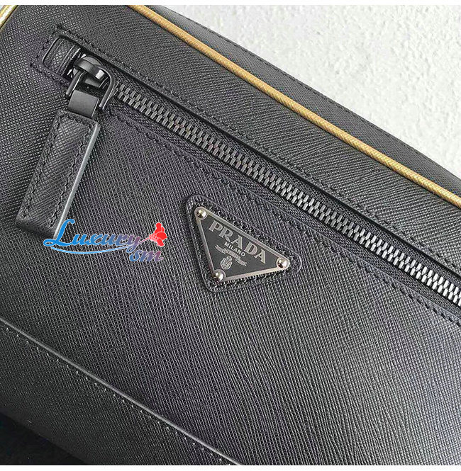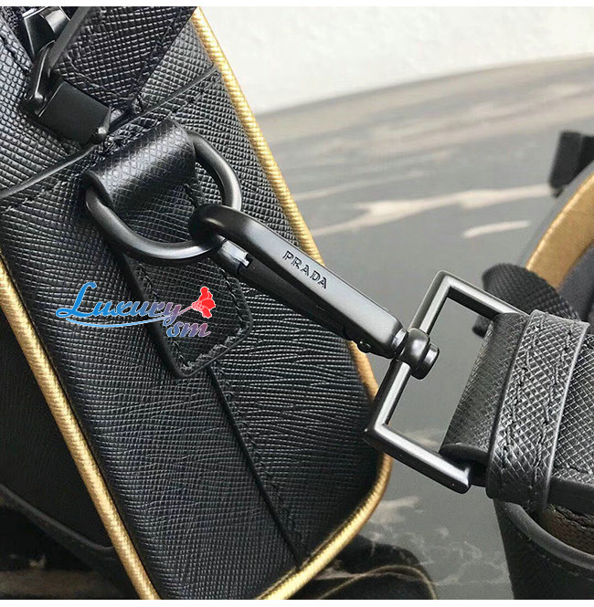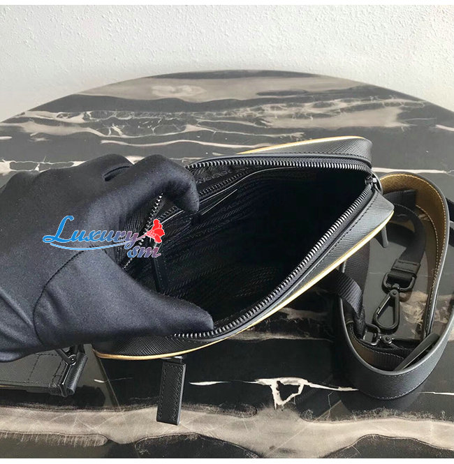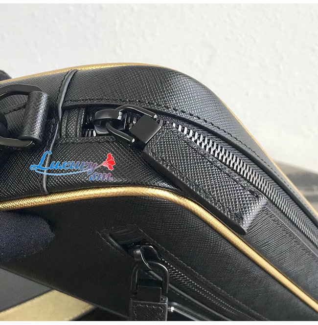 [스페셜오더]PRADA-2VH063 프라다 블랙 사피아노 가죽 골드 디테일 스몰 숄더스트랩백
