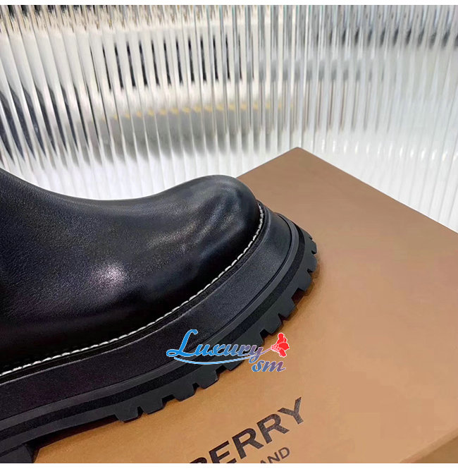 BURBERRY-80172211 버버리 블랙 송아지 가죽 첼시 부츠