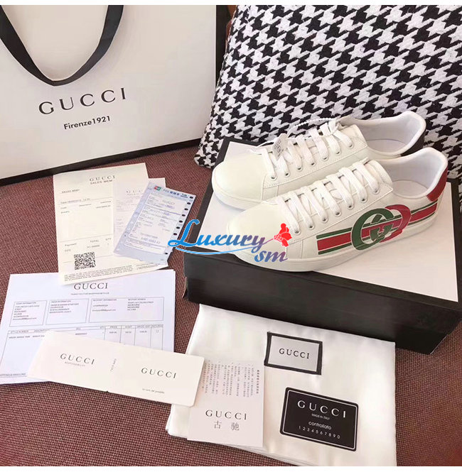 GUCCI-577145 9062 구찌 에이스 화이트 가죽 인터로킹 G 스니커즈 남여공용