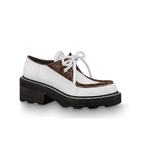 LOUIS VUITTON-1A5SNT 루이비통 화이트 송아지 가죽 모노그램 디테일 LV 보부르 플랫폼 더비