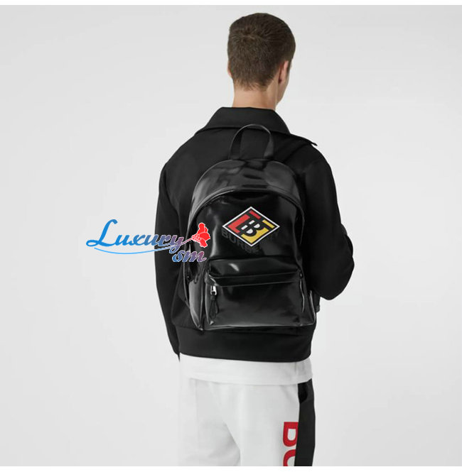 [스페셜오더]BURBERRY-80217801 버버리 블랙 로고 그래픽 코팅 캔버스 백팩