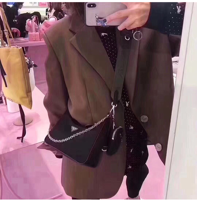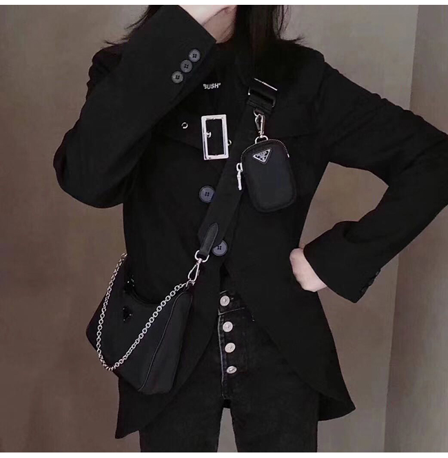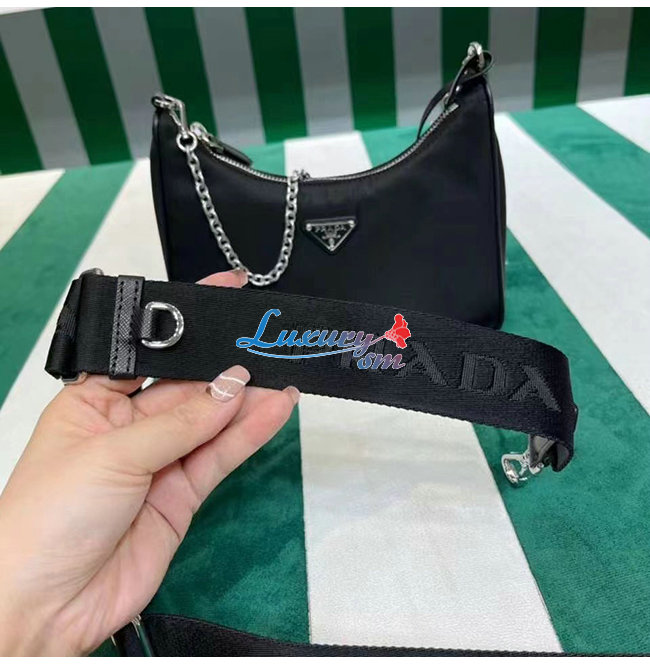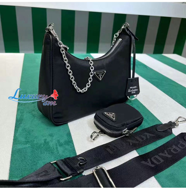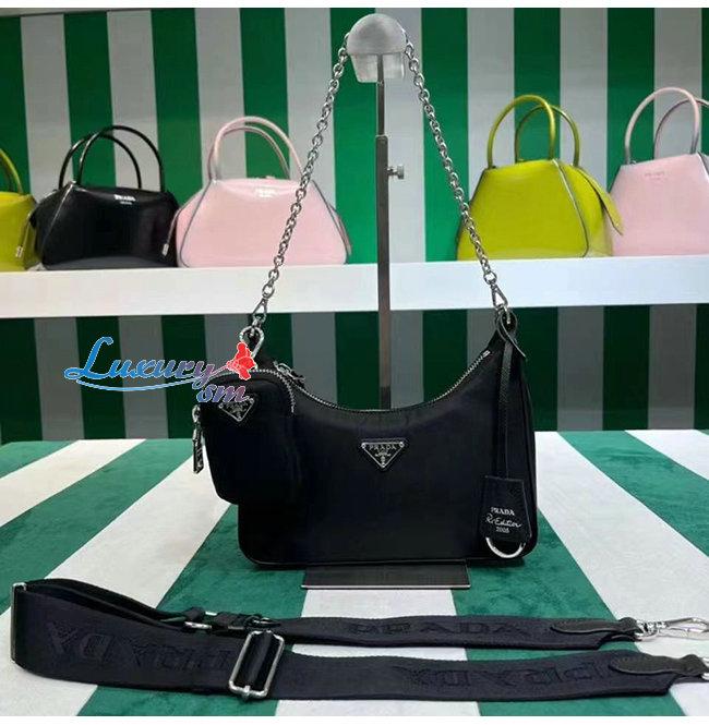 PRADA-2146 프라다 블랙 나일론 동전지갑 호보 숄더백