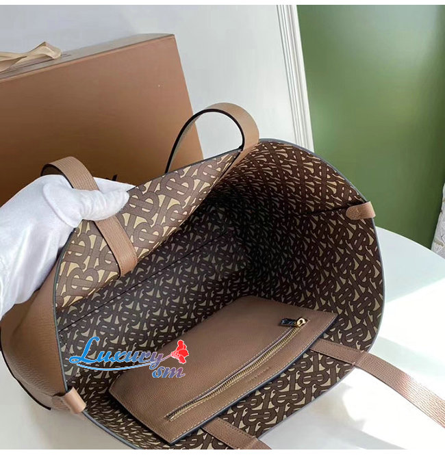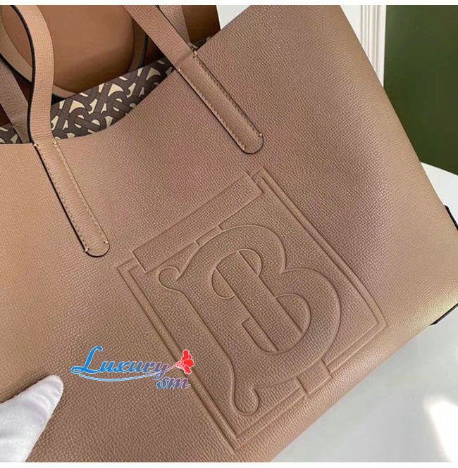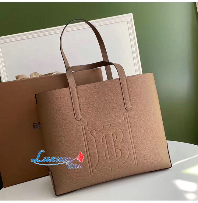 [스페셜오더]BURBERRY-80196271 버버리 카멜 송아지 가죽 엠보싱 모노그램 모티프 토트
