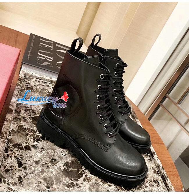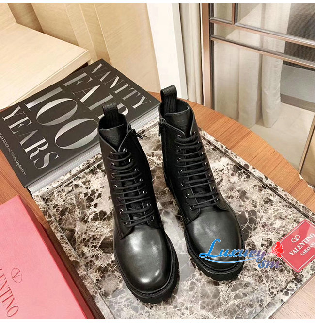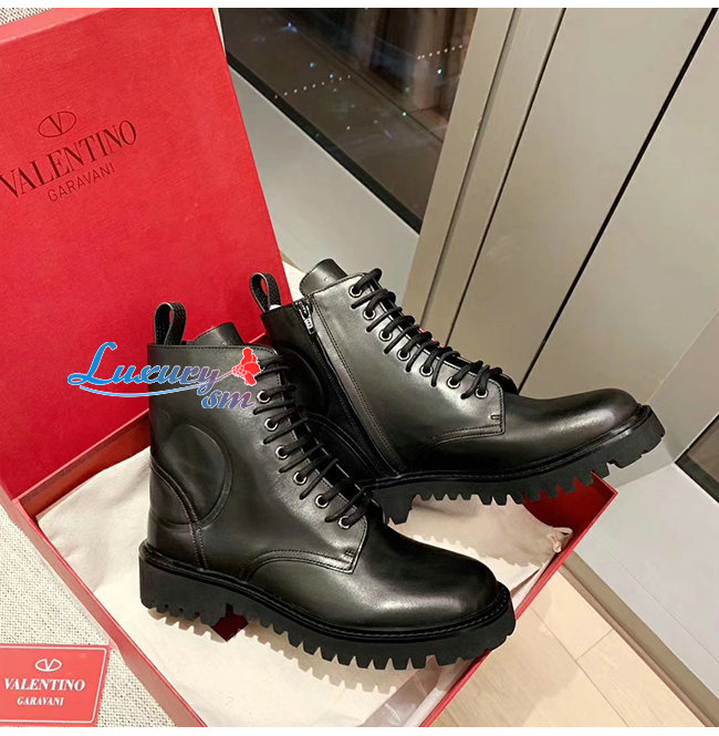 VALENTINO-SW2S0P 발렌티노 블랙 송아지 가죽 VLOGO 컴뱃 부츠