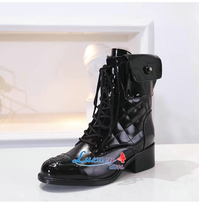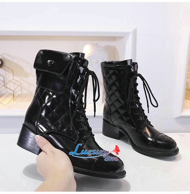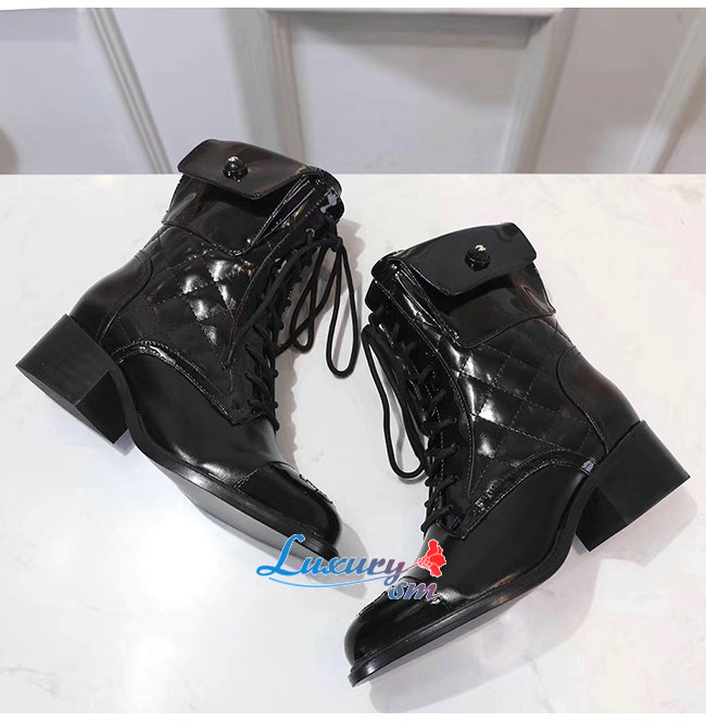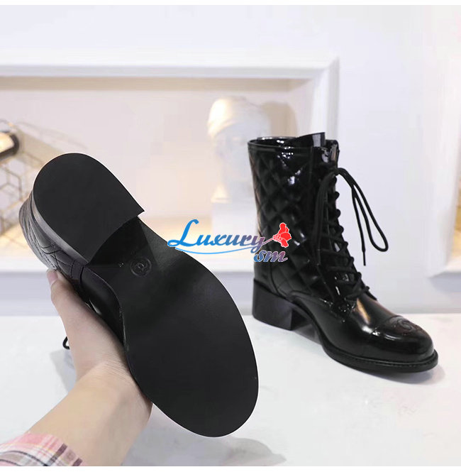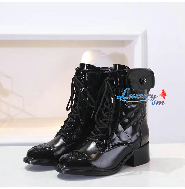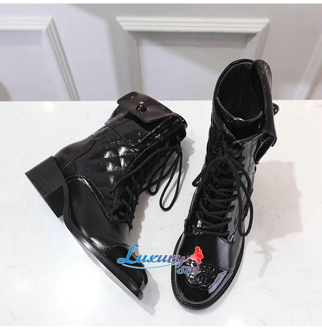 CHANEL-G35281 샤넬 블랙 페이턴트 카프스킨 쇼트 부츠