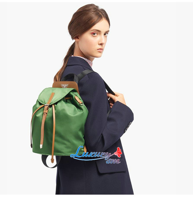 [스페셜오더]PRADA-1BZ064 프라다 그린/캐러멜 나일론 사피아노 가죽 백팩