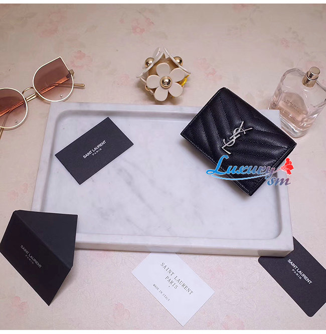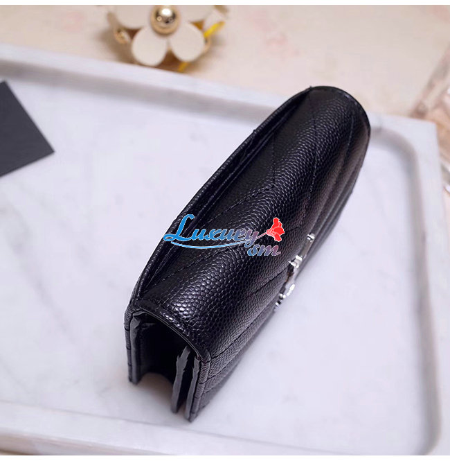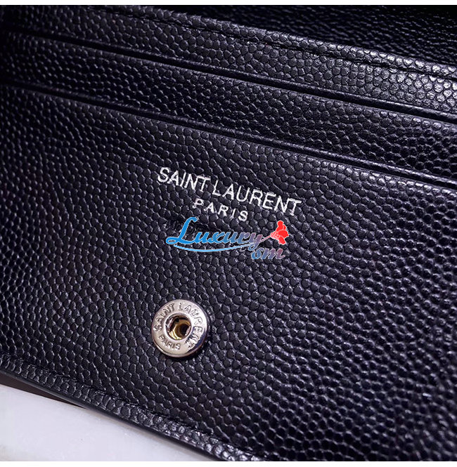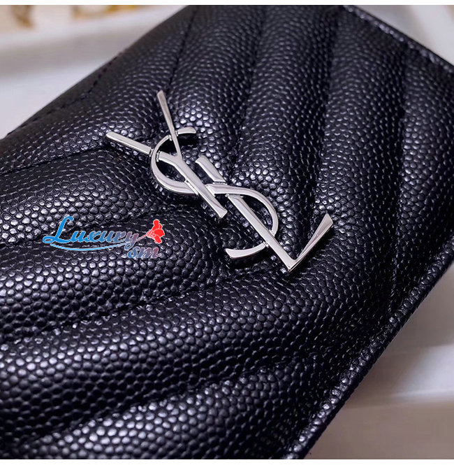 [스페셜오더]SAINT LAURENT-530841 생 로랑 블랙 텍스처드 퀼티드 가죽 실버 모노그램 카드 홀더
