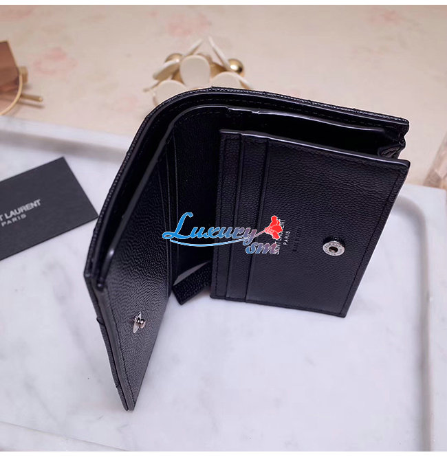 [스페셜오더]SAINT LAURENT-530841 생 로랑 블랙 텍스처드 퀼티드 가죽 골드 모노그램 카드 홀더