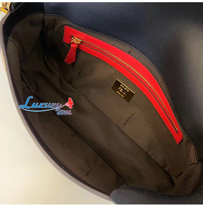[스페셜오더]FENDI-8BR600 펜디 블랙 FF 모티프 양가죽 미디엄 바게트백