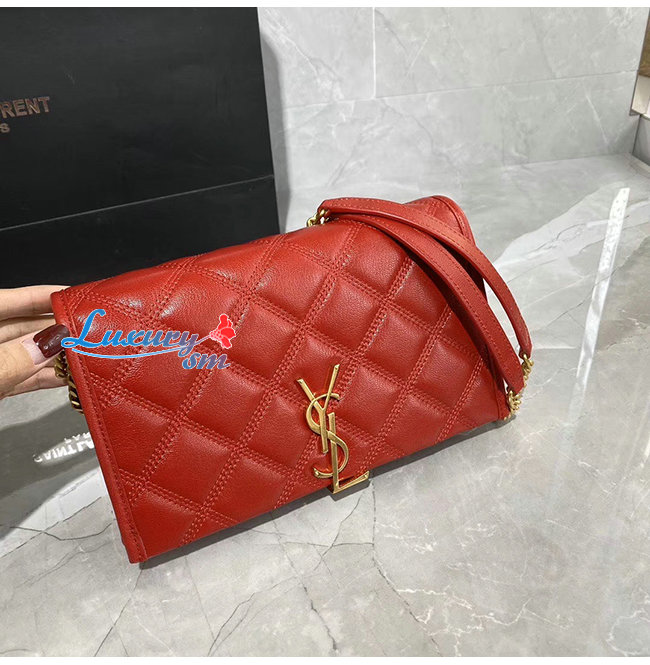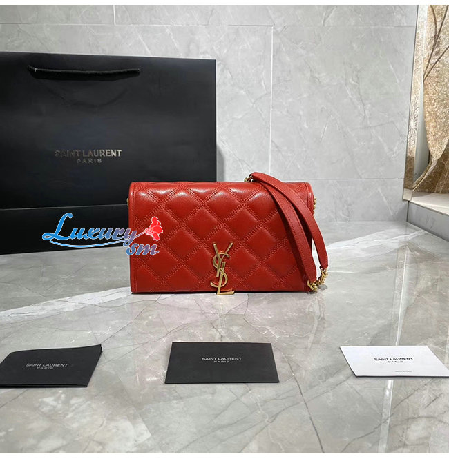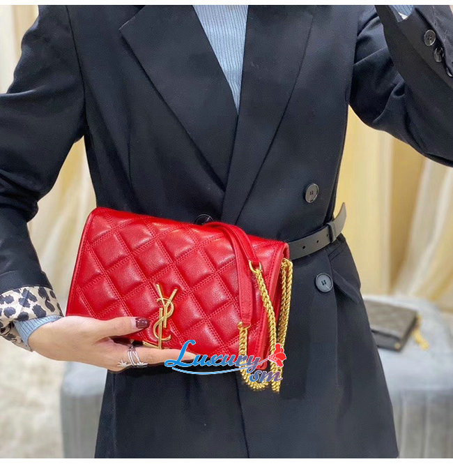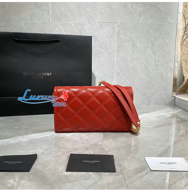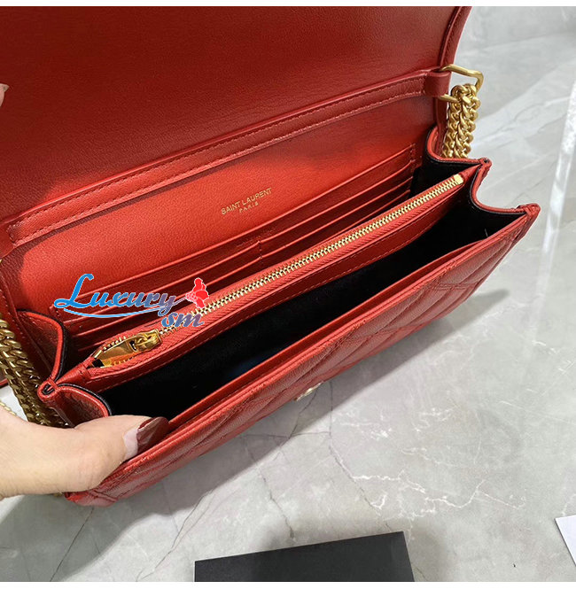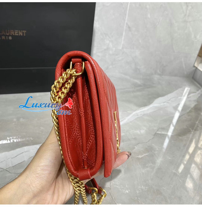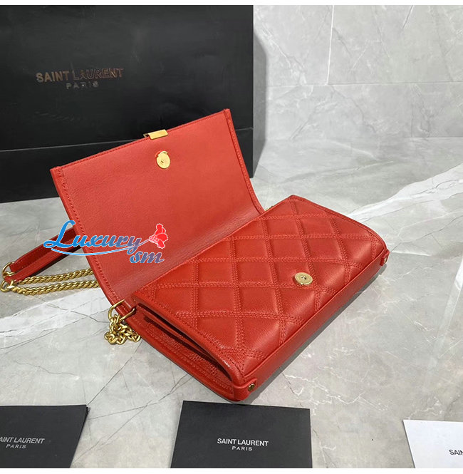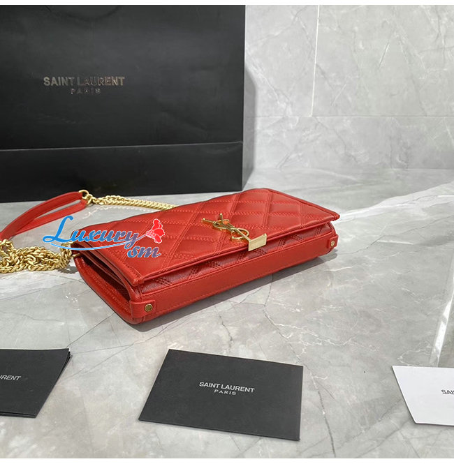 [스페셜오더]SAINT LAURENT-585031 생 로랑 레드 다이아몬드 퀼티드 램스킨 베키 체인 월릿