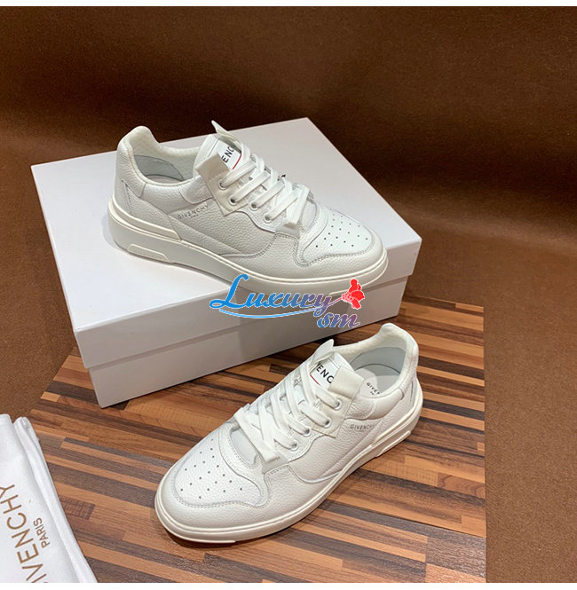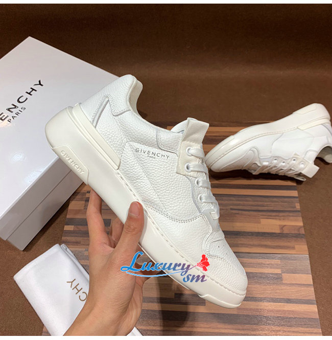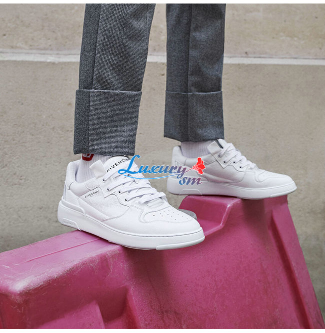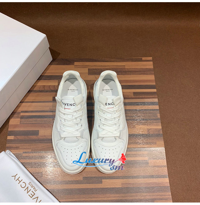 GIVENCHY-BH002K 지방시 화이트 윙 로우탑 가죽 스니커즈