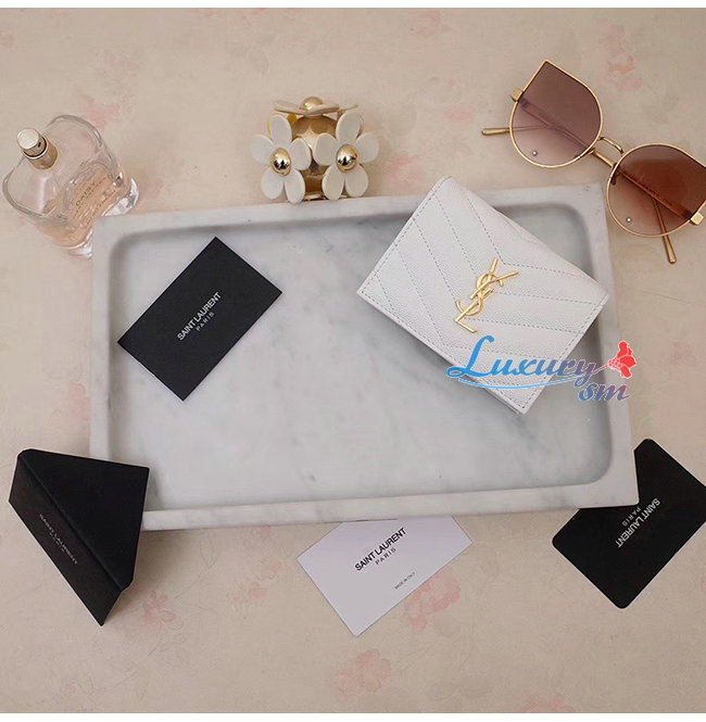 [스페셜오더]SAINT LAURENT-530841 생 로랑 화이트 그랑 드 뿌드르 텍스처드 가죽 모노그램 지갑