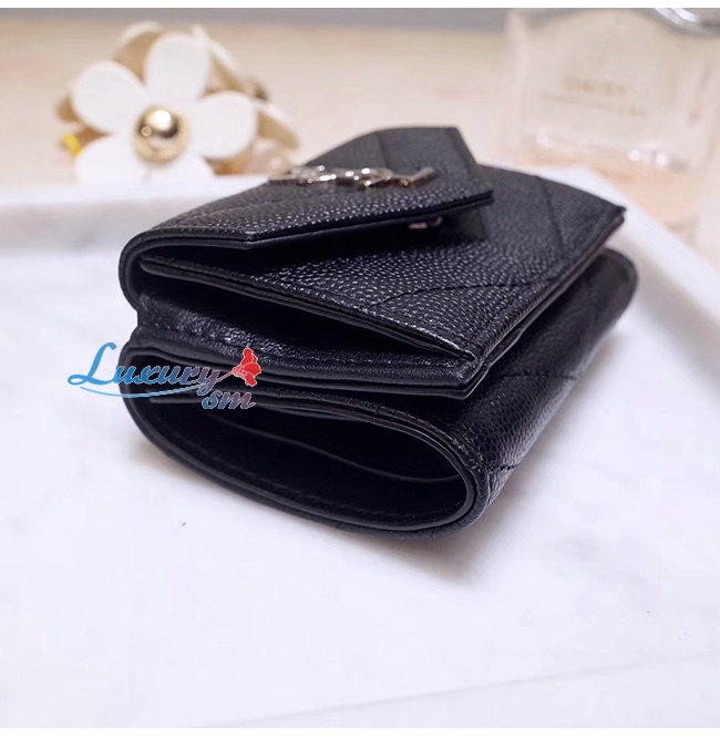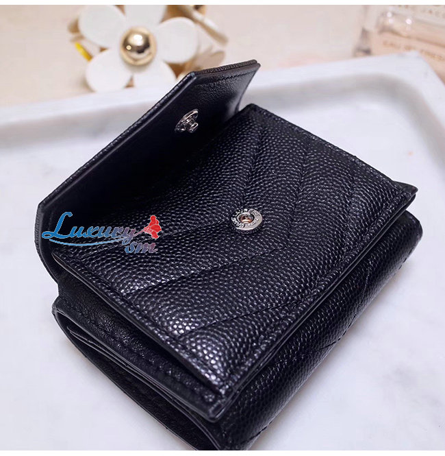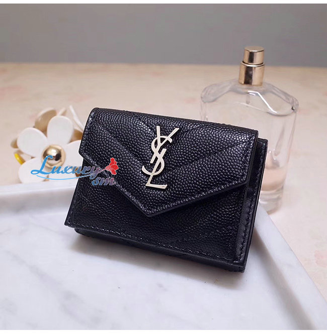 [스페셜오더]SAINT LAURENT-505118 생 로랑 블랙 마틀라세 가죽 은장 모노그램 티니 월릿