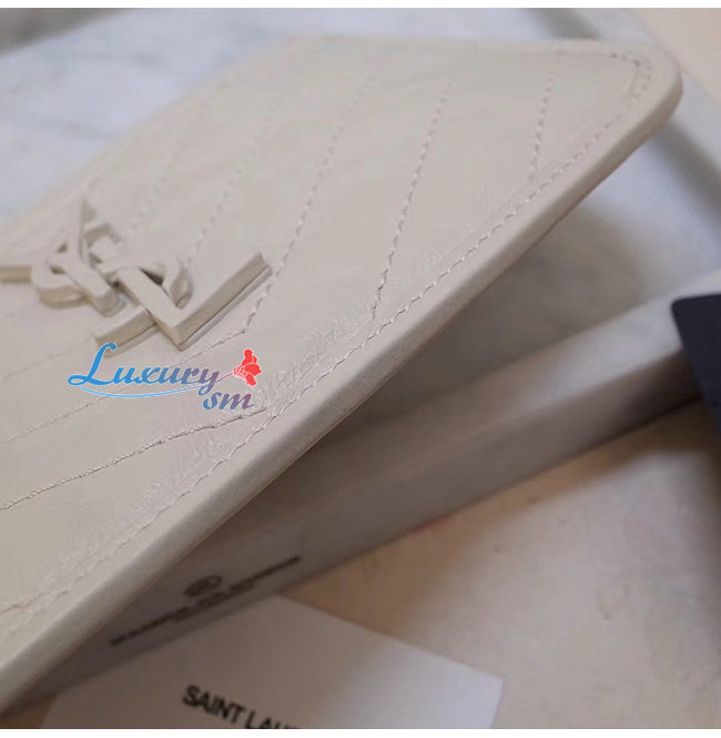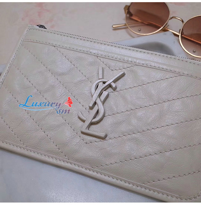 SAINT LAURENT-583577 생 로랑 화이트 빈티지 송아지 가죽 니키 파우치