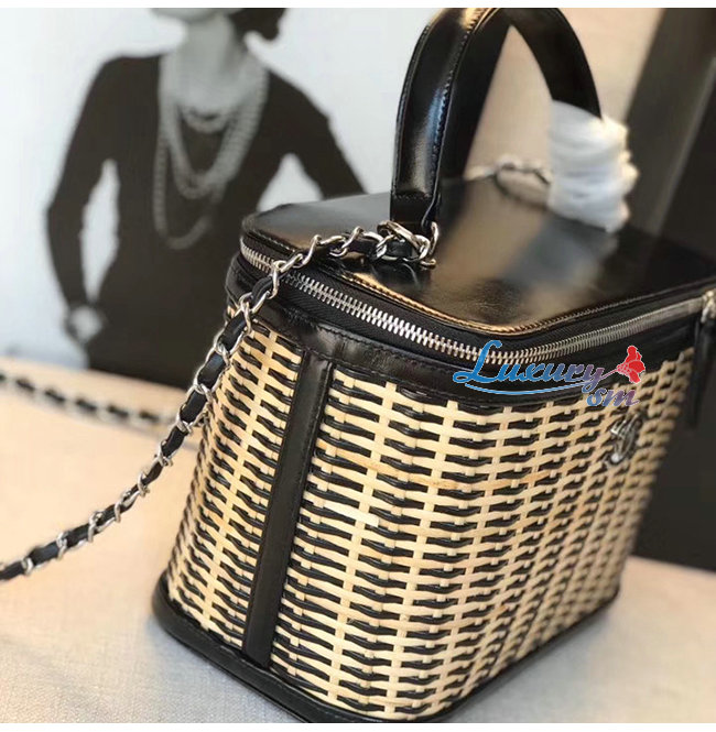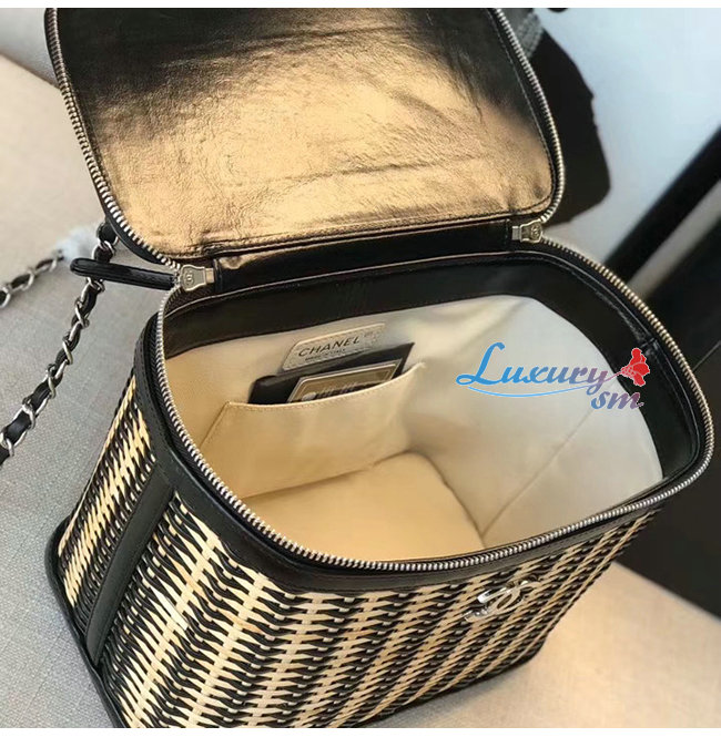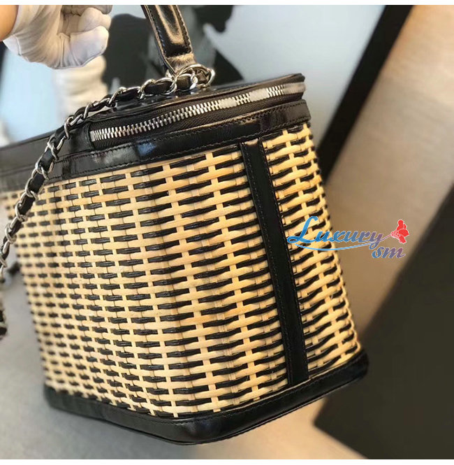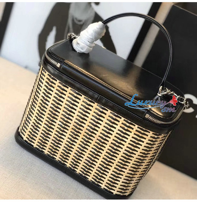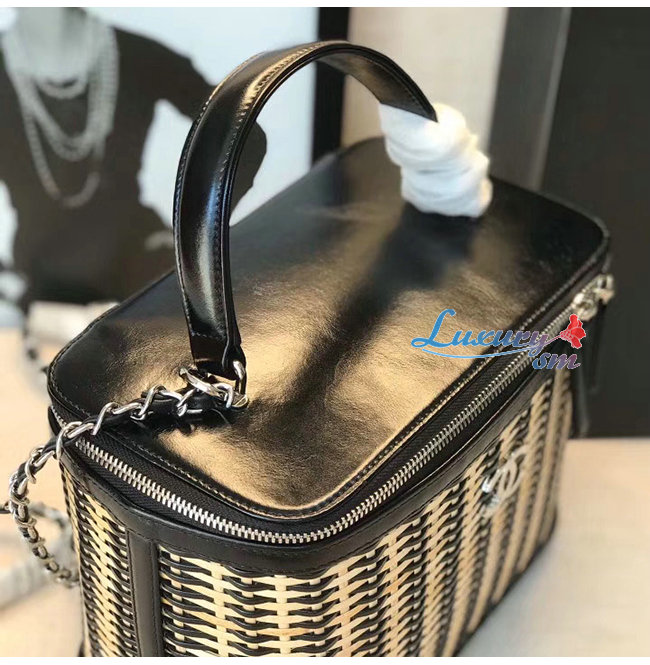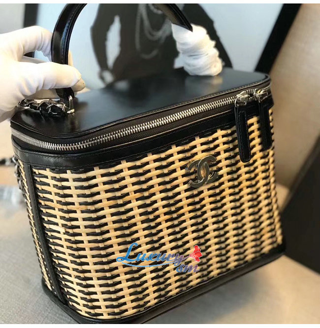 [스페셜오더]CHANEL-AS1347 샤넬 베이지/블랙 라탄 카프스킨 실버메탈 코스메틱 케이스