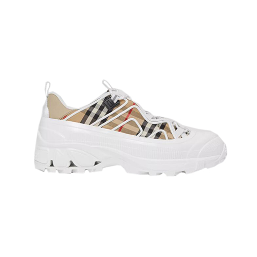 BURBERRY-80372541 버버리 베이지/화이트 빈티지 체크 코튼 레더 아서 스니커즈 가격 : 300,000원