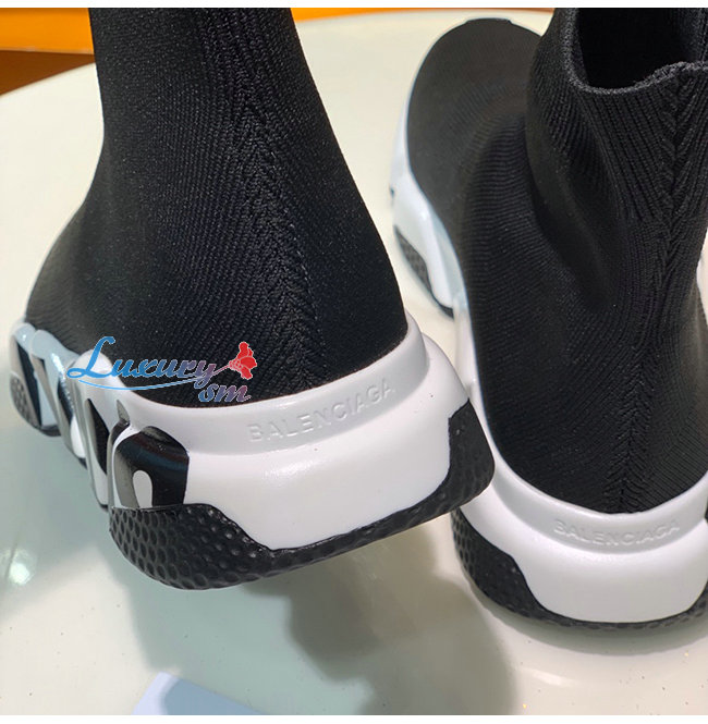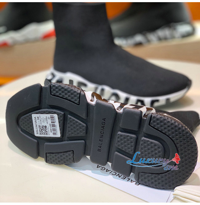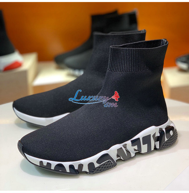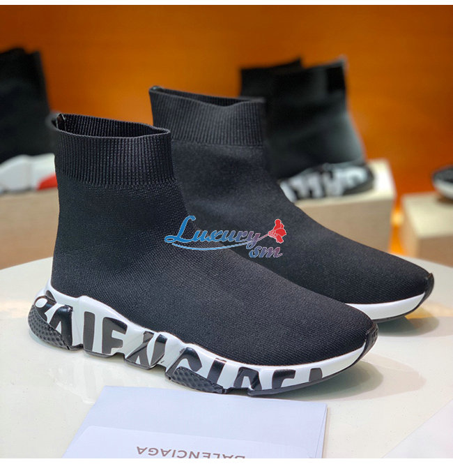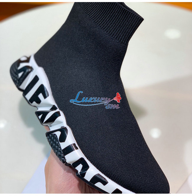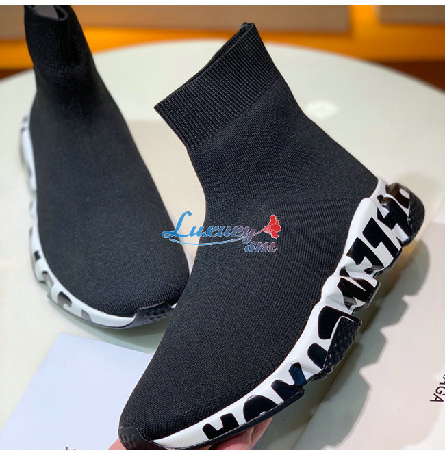 BALENCIAGA-605972 발렌시아가 블랙/화이트 니트 그래피티 로고 스피드 트레이너 남여공용