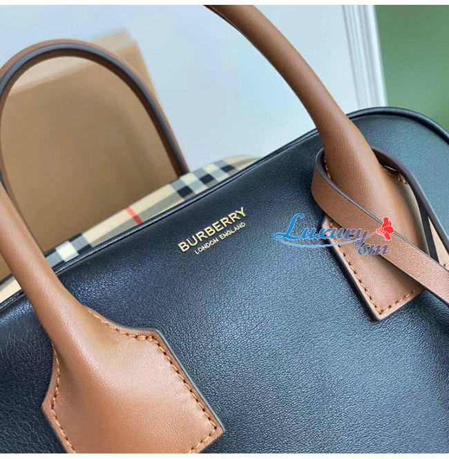 투톤 스무드 가죽 소재의 버버리 런웨이 볼링 백