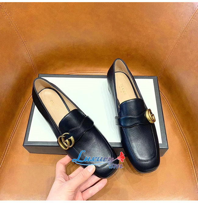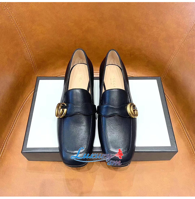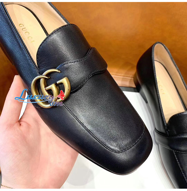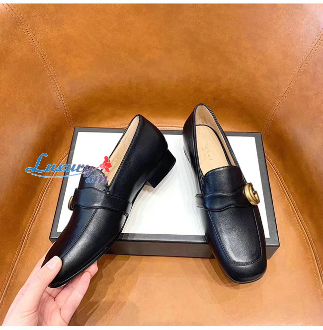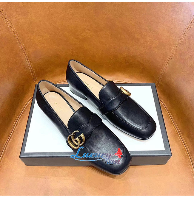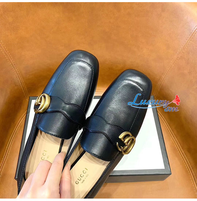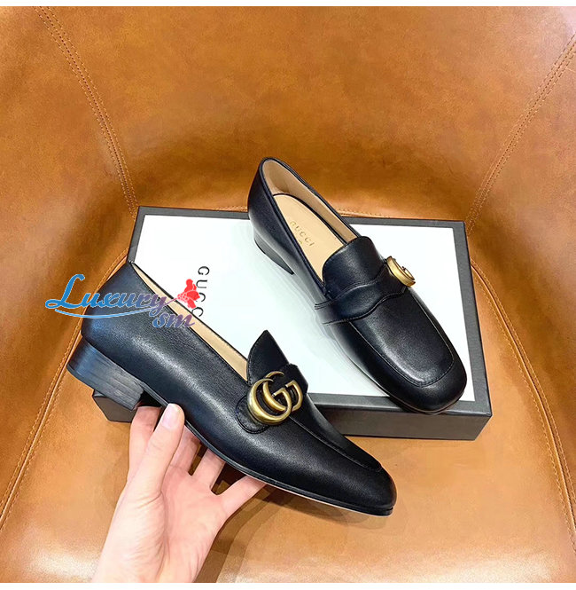 GUCCI-602496 1000 구찌 GG 마몽 블랙 가죽 더블 G 로퍼