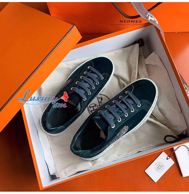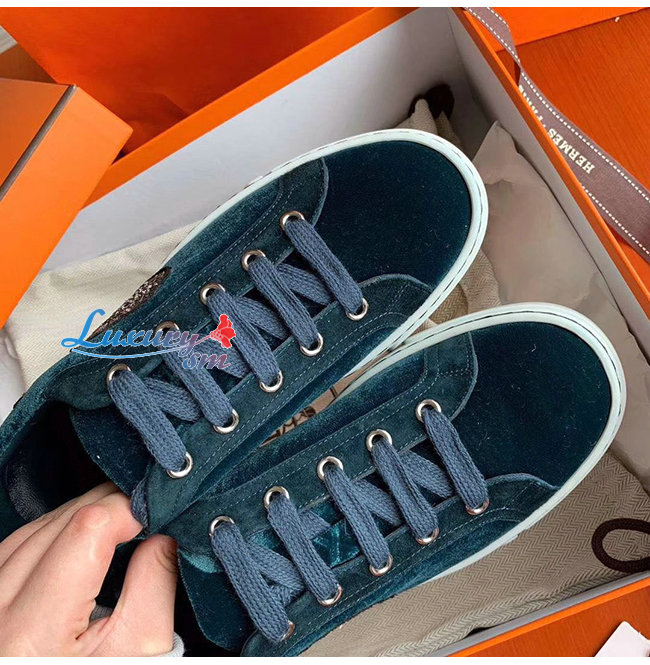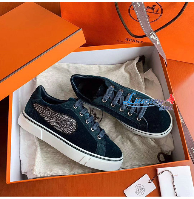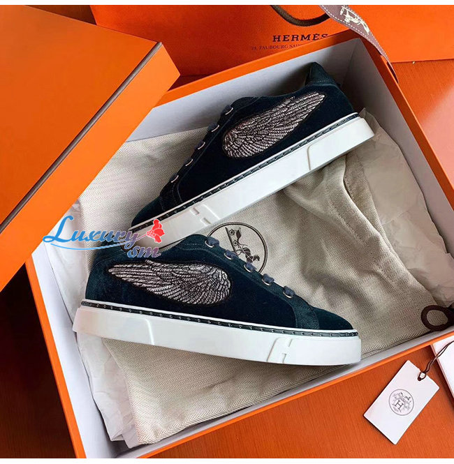 HERMES-H192114 에르메스 피쿡 블루 벨벳 윙 디테일 스니커즈