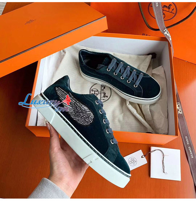 HERMES-H192114 에르메스 블랙 벨벳 윙 디테일 스니커즈