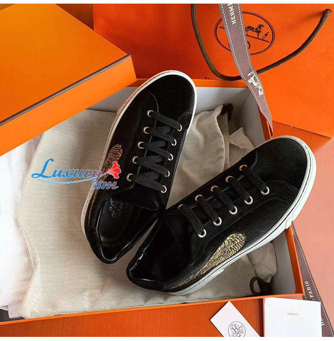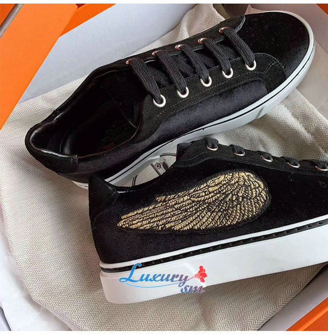 HERMES-H192114 에르메스 블랙 벨벳 윙 디테일 스니커즈