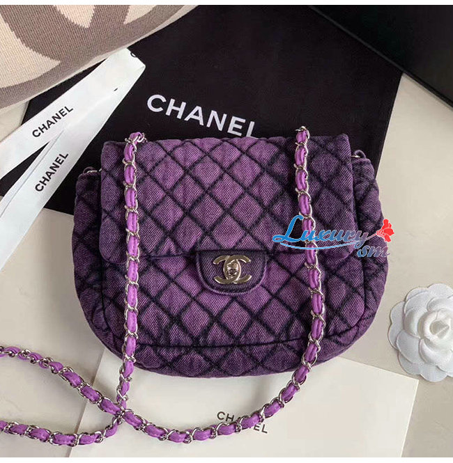 [스페셜오더]CHANEL-AS1309 샤넬 퍼플 데님 실버메탈 스몰 플랩백