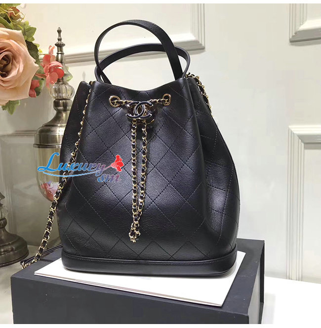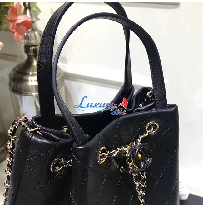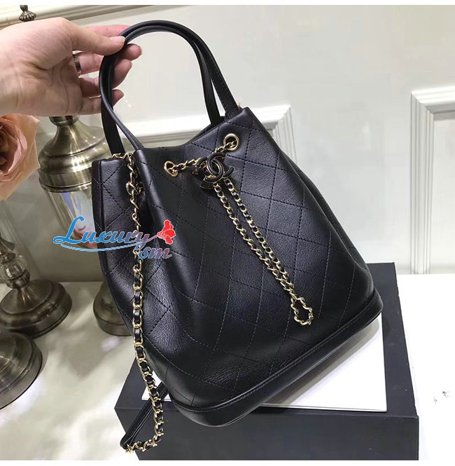 [스페셜오더]CHANEL-AS1099 샤넬 블랙 카프스킨 골드메탈 라지 드로스트링백